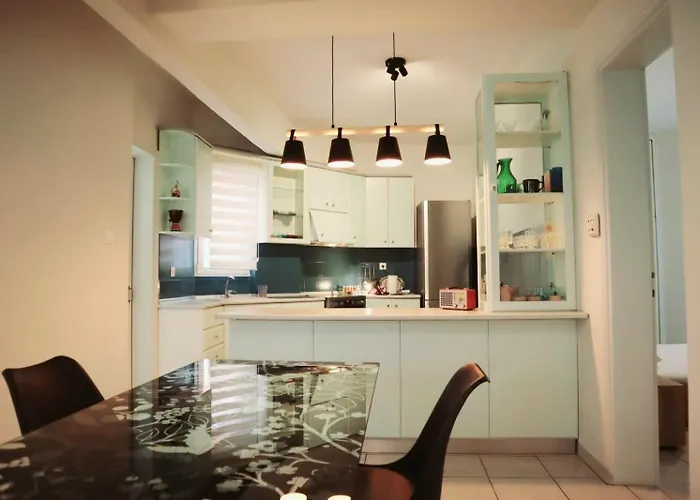Appartamento Frida'S Urban Escape, di 86 m², è dotato di un angolo cottura attrezzato, che include un bollitore elettrico, un frigo e una vetreria, per garantire la massima comodità. La fermata dell'autobus Tahidromio è situata a circa 5 minuti a piedi da quest'appartamento. Un patio invita gli ospiti a rilassarsi.